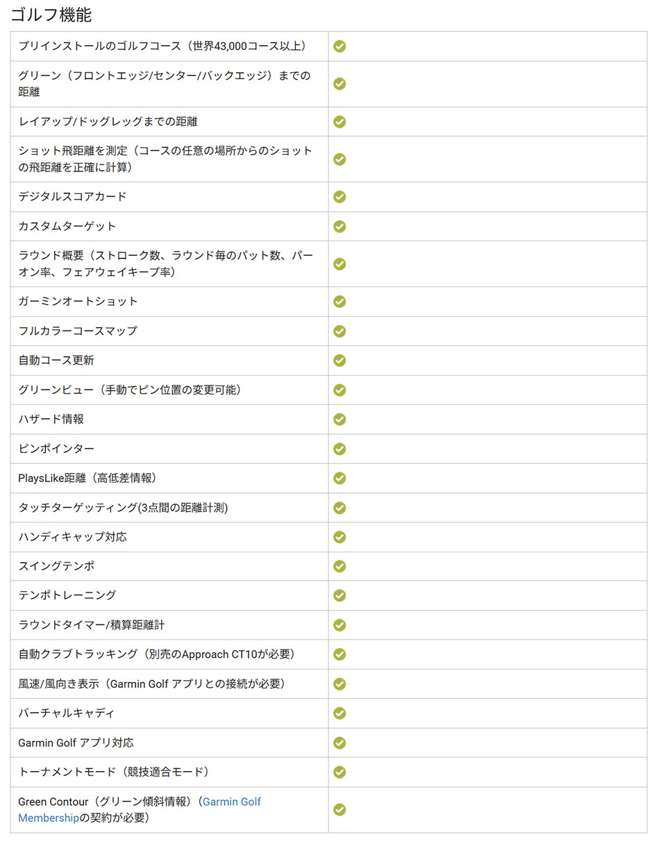 Approach S50とApproach S44のゴルフ機能の仕様を公式サイトから引用しました。