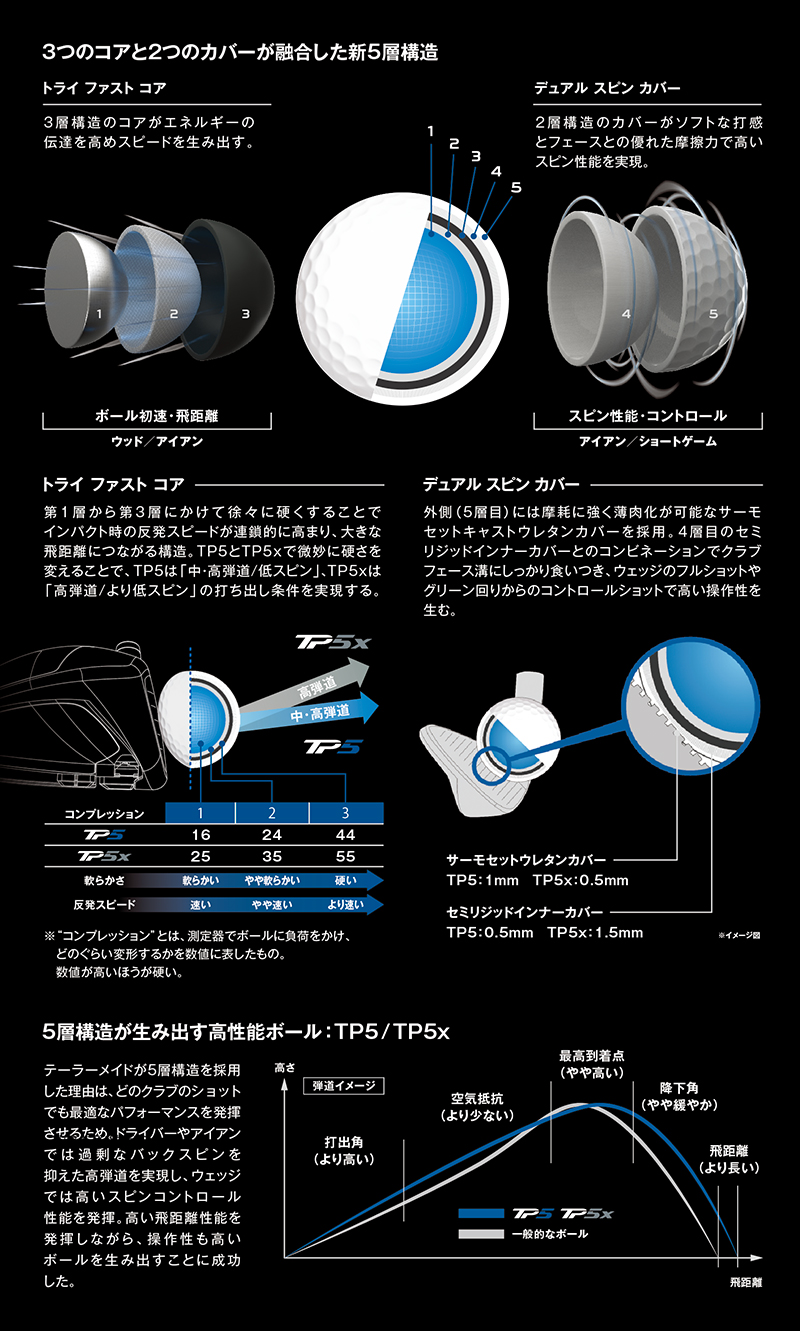 すべてのクラブで性能を発揮するために生み出されたテーラーメイドの新5層ツアーボール。