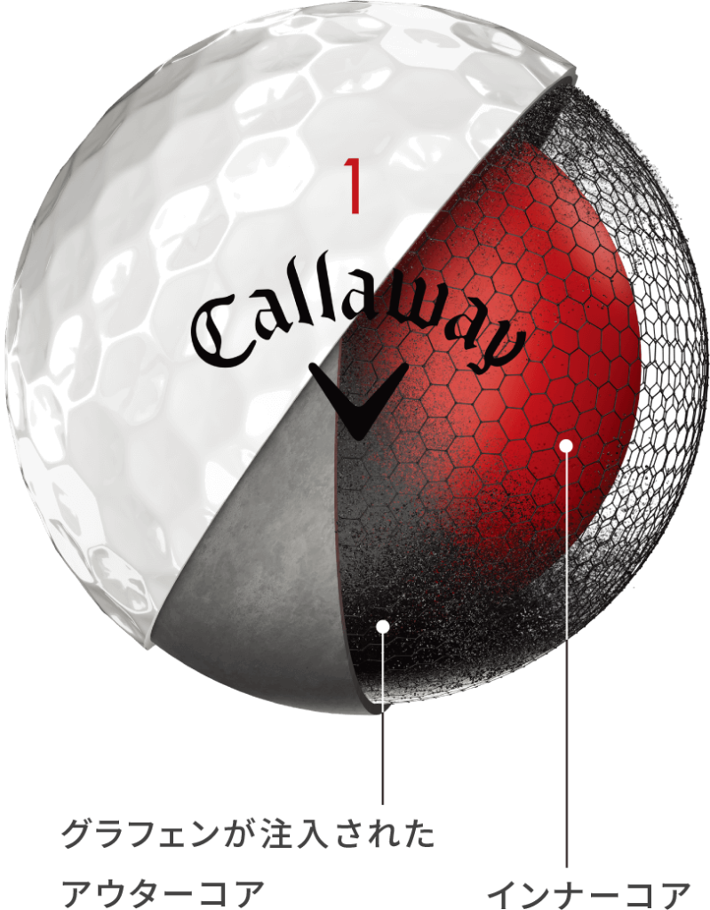 この第三のボールはカバーにウレタンを使ったものが多いですが、今年発売されたキャロウエイのクロムソフトは、アウターコアに新素材のグラフェンというナノテク炭素繊維を業界で初めて使ったボールとして注目を集めています。