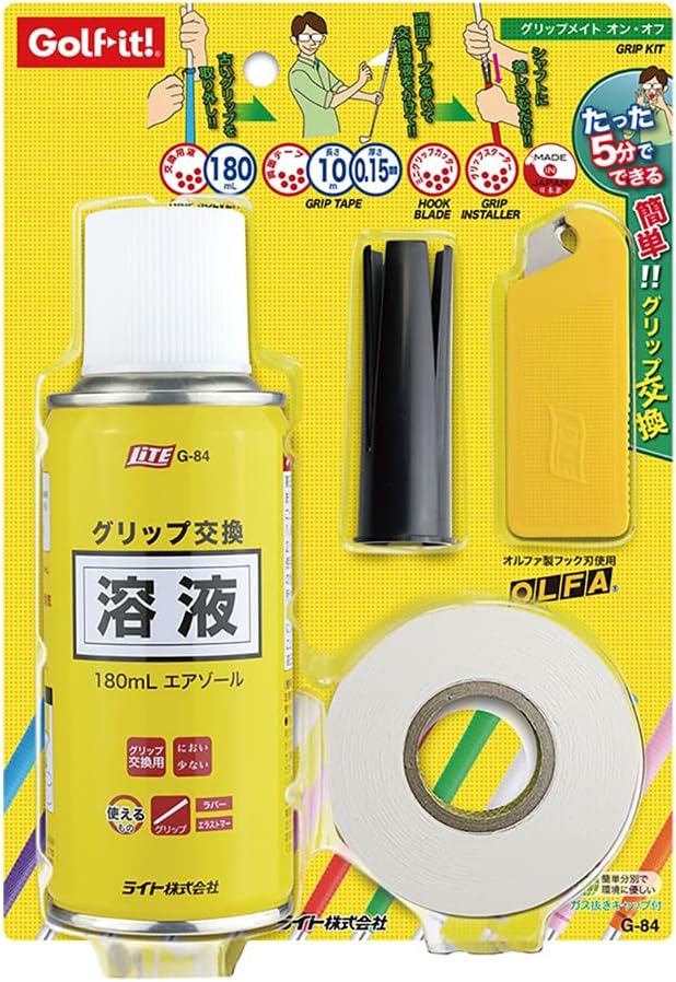 で、とりあえずお試しで交換グリップ1本とグリップ用のカッターや両面テープ、溶剤を量販手で購入して試してみました。