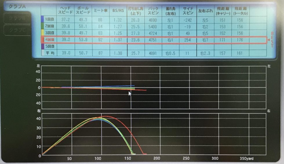 それから試打していてこれ凄いなって思ったのが、あくまでも測定器の結果での判断ですが、球が安定していること、球が散らばらないんです。